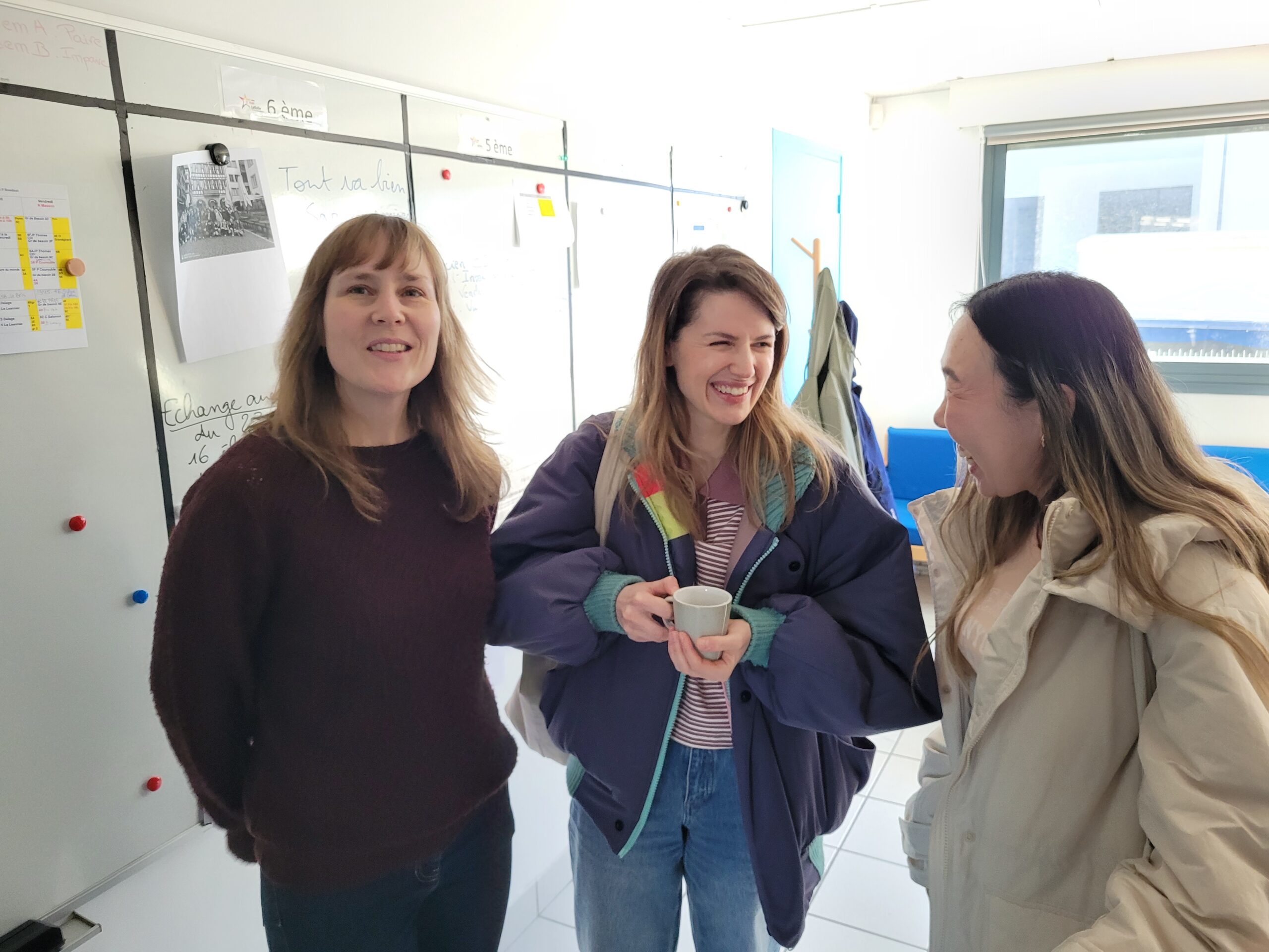 Ce jeudi 26 mars, nous avons eu le plaisir d’accueillir deux professeures d’anglais venues observer le fonctionnement d’une école française lassalienne. Irina et Yulia, respectivement russe et ukrainienne et meilleures amies depuis leurs études, ont eu l’occasion d’assister aux cours de trois de nos collègues professeures de langue anglaise, puis d’échanger avec les élèves en salle Parménie.